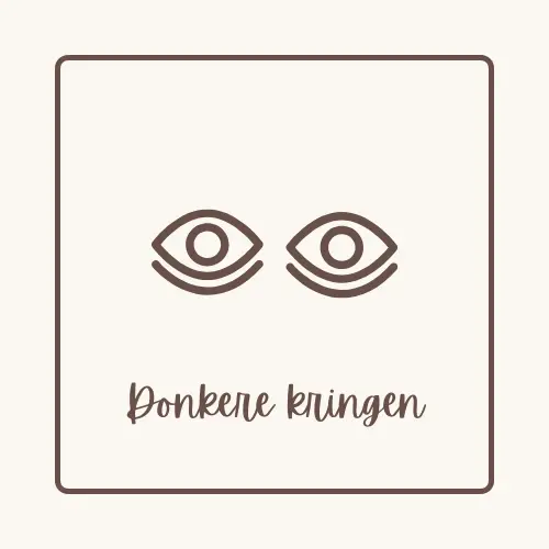 Blauwachtige of bruine verkleuringen die vooral onder de ogen, maar soms ook rondom de ogen zichtbaar zijn.