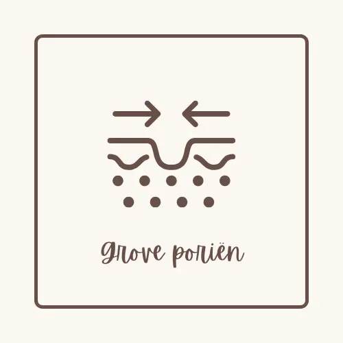Vergrote openingen in de huid die duidelijk zichtbaar zijn op de neus, wangen en voorhoofd. Dit geeft een minder egaal huidbeeld.